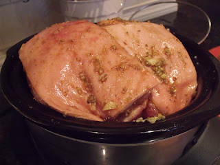 Now place the shoulders in your slow cooker. Well..I tried to anyways...my slow cooker was wayyyyy too small for these suckers.